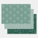 A trio of rustic wrapping paper sheets in sage green hues adorned with leaves, quaint candles, festive stockings, and enchanting Scandinavian horses, this design captures the heartwarming essence of the holidays. Perfect for those special Christmas moments, it adds a special touch that makes each gift feel like a cherished treasure.