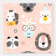 Introducing the **Cute Scandinavian Animal Funny Faces Nursery Wallpaper**—a delightful and whimsical addition to any child's room. This elegant wallpaper features adorable cartoon faces of jungle and forest animals, including zebra, koala, panda, giraffe, lion, bear, and racoon, all rendered in charming pastel watercolor. Perfect for a gender-neutral boho Scandinavian nursery, it combines playful elements with an elegant, minimalist, and trendy modern design.