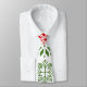 This necktie has a winter design of different snowflakes in red and green in rows.