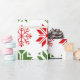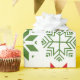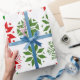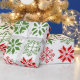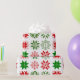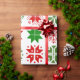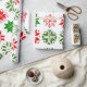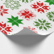 This wrapping paper has a Christmas design of different snowflakes in red and green in rows.