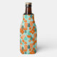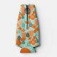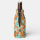 This bottle cooler has a Scandinavian design of flowers and leaves in various shades of orange and teal.