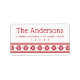 Red and white or any color return address labels with your name in a cute display font with the return address below. Along the botton is a traditional Scandinavian star pattern border. You can change the background and font colors to any custom colors with the design tool.