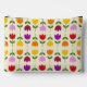 Scandinavian style flower illustrations in a colourful repeat pattern on a cream colour background.