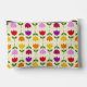 Scandinavian style flower illustrations in a colourful repeat pattern on a cream colour background.