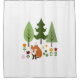 Scandinavian Style Fox Flowers Trees Illustration Shower Curtain