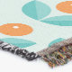 This folk art design features a minimalistic pattern resmbling oranges and leaves.