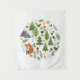 Scandinavian folk art style nature illustrations (woodland; fox, leaves, trees, flowers, mountains and birds) in a circular design on a transparent background to add a colour or keep as white.