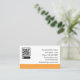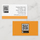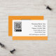 Contact me business cards with promotional scannable QR code graphic you can replace with your own and simple editable design template you can customise online. Created for networking with other business executives or entrepreneurs as a way to promote a product, company, or line of merchandise. Created with a pop of orange colour for visual impact.