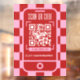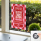 Trendy retro QR Code window cling with girly pink & red checkered background and modern fonts. This groovy shop window decal include a trendy phone design with space for your name or logo, scannable QR code and contact details. You can use this window vinyl poster to promote your website, connect with customers or make it easy for customer to see your menu or price list, simply add your custom URL and make your scannable window cling.