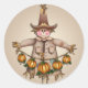SCARECROW & PUMPKIN GARLAND by SHARON SHARPE Classic Round Sticker