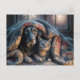 Scared Dog and Cat Watching Fireworks Postcard