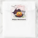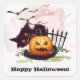 Bats in the sky fly above a scared black cat and a creepy leering jack o' lantern on these Happy Halloween stickers (in 2 sizes and several styles.) Fun for Halloween parties, Halloween birthday parties, party favour bags and boxes and more. MATCHING invitations in our collection.