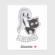 Scaredy cat Halloween edition on custom cut vinyl sticker. Cute cat and a ghost for spooky Halloween.
