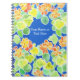 A colourful and stylish spiral notebook to customise, with a 'Nasturtiums' design, in orange, red, yellow and green on a blue background, from a handpainted watercolour design by Judy Adamson.