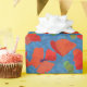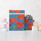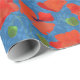 Scarlet Field Poppies on Leafy Blue Background Wrapping Paper