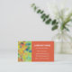 An eye-catching business card with an abstract red, orange, yellow and green design and a tangerine panel, with white lettering. Ready for you to customise with your own details.