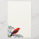 Original fine art design of a male Scarlet Tanager by avian artist Carolyn McFann of Two Purring Cats Studio printed on quality and customisable stationery for wild bird fans.
