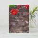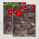 Here's a unique photo wedding invitation featuring some red blooms from a Double Take Flowering Quince bush towards the t.op of the image. They look a lot like a camellia. During the spring they bloom these beautiful double flowers. Congratulations on your engagement! To customise invitations, click on personalise.