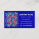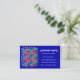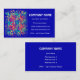 An eye-catching business card with an abstract red, yellow and green design on a royal blue background, with white lettering. Ready for you to customize with your own details.