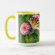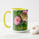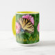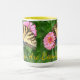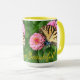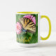 The Stitching Remnants blog was created to share the story of a stage 4 appendix cancer survivor. The butterfly shows just how beautiful life can be through all the trials and tribulations. It's beat up wings still allow it to fly from flower to flower. It is resting on a pink zinnia. The butterfly is an Eastern Tiger Swallowtail. 2 images are wrapped around the mug. Below the butterfly are the words "Scars Are Beautiful!"
