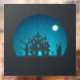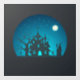 The centerpiece of this haunting window cling is a creepy haunted house, its intricate details and ominous silhouette capturing the essence of the supernatural. Against the backdrop of the vivid blue ombre circle and deep black background, the design comes to life, creating a captivating visual display. A barren tree stretches its twisted branches towards the moonlit sky, while a menacing hooded figure lurks nearby, adding an extra layer of mystery and suspense.