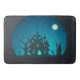 At the heart of this haunting bath mat is a creepy haunted house, its intricate details and foreboding silhouette capturing the essence of the supernatural. Against the backdrop of the vivid blue ombre circle and deep black background, the design comes alive, immersing you in a realm of ghostly tales. A barren tree stretches its gnarled branches towards the moonlit sky, while a menacing hooded figure lurks nearby, adding an extra layer of suspense to the scene.