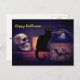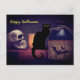 Scary Black Cat and Skull Happy Halloween Postcard