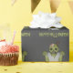 Destei's original cartoon illustration of a scary green colour zombie character made into a pattern. Under the image there is a personalizable text area that now reads "Happy Halloween!". The background colour is dark grey.