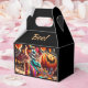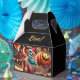 Personalised Halloween favour boxes. Do you find clowns and carnivals creepy? Then here is some scary Halloween supplies for you. Vintage spooky clown at the retro carnival holding a jack o' lantern and a bowl of candy surrounded by Halloween balloons.