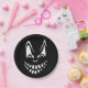 A drawing of a scary and spooky looking face which is smiling creepily.