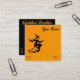 Square business card or personal call card in orange background with a scary flying witch. On the back side of the card, the colours are reversed. It is easy to personalise both sides with the details of your own witch or magic business. Clip art from Zazzle Fonts composition by Alma Wad It comes 100 per pack.