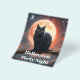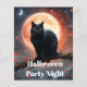 Pictured On A Gnarly Tree Branch In Front Of A Full Moon With Flying Bats In The Background Is A Black Cat With Orange Eyes.