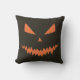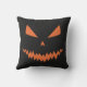 Scary Halloween Jack OLantern orange face black Cushion