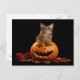 Scary Halloween Pumpkin And Somali Kitten Postcard