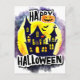 Scary Happy Halloween Night with Raven Bat Witch Postcard