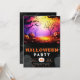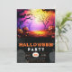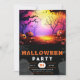 Celebrate the spookiest time of the year with this enchanting Halloween party invitation. The top half showcases a mesmerising Halloween scene, where creepy trees loom beneath a large, glowing full moon. The sky is a vibrant blend of pink, purple, and orange, casting an eerie yet captivating glow over the jack-o'-lanterns and gnarled branches. This colourful backdrop sets a bewitching tone for your festivities.
