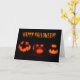 Halloween card featuring three scary jack-o'-lanterns, ready to spook someone in the dark. Personalise the message and have fun. Nice card for any age.