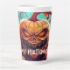 Scary Looking Orange Pumpkin with Face, Halloween Latte Mug