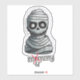 This is a cute "horror-themed" halloween sticker with an illustration of a scary mummy and a text "mummy" with a crossed-over "o".