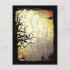 A spooky abstract design with a grungy background and the silhouette of a dead tree on the left side.