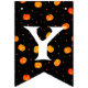 A spooky and funny Halloween pumpkins, scary jack-o'-lantern and colourful polka dots seamless pattern, creepy spider on black orange stripes and Happy Halloween script white letters on black. Easy to decorate Your front porch with this beautiful and colourful Halloween party buntings. You can change the text and colour by clicking personalise options.