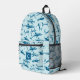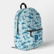 Scary Shark Pattern Aqua Blue Monogram Printed Backpack