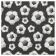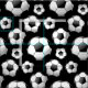 Black fabric featuring scared round shiny soccer balls.
