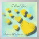 The Scattered Hearts Poster features yellow hearts scattered on a water colour background, with the text "I love you...always & forever." Customise the text as desired. Makes a great accent piece in almost any room--also makes a great gift!
