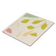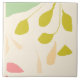 Dry green and pink leaves are scattered over this ceramic tile surface.