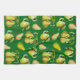 Tea towel in a print of scattered pears and leaves, adapted from vintage botanical art, on a deep emerald green background