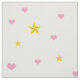 Scattered Pink Hearts and Golden Yellow Stars on Creamy Off White Colour Background Fabric. Available in many sizes and various fabric types.