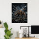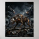 Fierce and cunning, this scavenger hyena design features patchwork armour plating, welded scrap panels, exposed gears, glowing eyes, and a menacing grin crafted from salvaged metal. Moving through a junkyard wasteland of broken vehicles, twisted beams, sparks, smoke, and moonlit shadows, the hyena radiates survival instinct and raw attitude. Perfect for gaming rooms, studios, garages, and modern interiors. A bold choice for fans of post-apocalyptic style, predators, and rugged mechanical animal art.