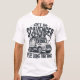 This white t-shirt features a graphic of a grey truck with five cartoon raccoons sitting on top. The text "GET IN SCAVENGER" is above the truck, and "WE'RE GOING THRIFTING" is below. Stars are scattered around the design. This shirt is perfect for anyone who loves thrifting and scavenging.