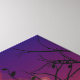 Two people ride a tandem bicycle through a surreal landscape at sunset